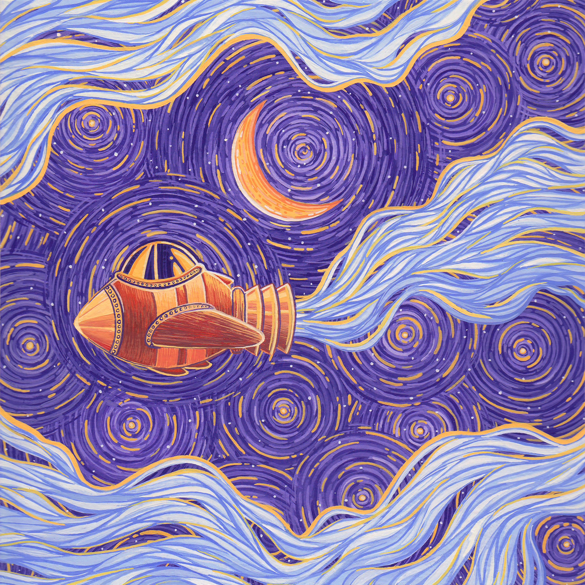 TheseĀ paintings were created for use as album covers on Spotify and advertising on various social media platforms. Commissioned by Lost & Sound Music, a company that specializes in creating ambient music collections.